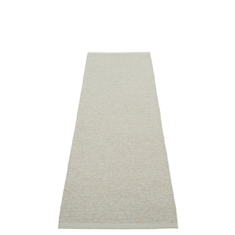 Using an innovative weaving technique developed by master weaver Kim Fröyen and designer Lina Rickardsson, EMM features a unique blend of European linen warp and PVC ribbons. This results in small, raised squares that create a dynamic and vibrant design. The natural shine of the linen is enhanced by the metallic shades, elevating both the pattern and texture.